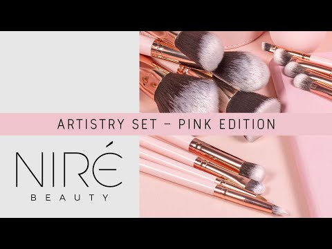 Get ready to party with Niré’s cutest brush collection — the Rose Gold & Pink Artistry Set. Featuring limited edition soft-pink handles and rose gold ferrules, our multi-award winning collection of pro make-up brushes contains 7 classic brushes for the eyes, 5 for the face, and a bonus Niré Blending Sponge (also in pink!).