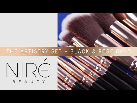 Stand out from the crowd with Niré’s most exclusive brush collection — the Rose Gold & Black Artistry Set. Featuring limited edition black handles and rose gold ferrules, our multi-award winning collection of pro make-up brushes contains 7 classic brushes for the eyes, 5 for the face, and a bonus Niré Blending Sponge.